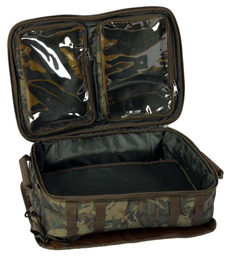 Fantastická novinka českej kaprárskej značky Giants fishing, ktorá pri vývoji tohto batoha spolupracovala s viacerými kaprármi, vďaka čomu sa podarilo vyrobiť skutočne unikátny produkt. Batoh Compact Rucksack poskytuje maximum miesta vďaka kolmým rohom, kde sa tak zmestí ďaleko viac drobností. Vnútorný priestor je tak fantastický a dokážete tam ukryť naozaj veľa materiálu či príslušenstva. Naozajstnou vychytávkou sú priehľadné dve predné vrecká, ktoré je možné otvárať ako z prednej časti batoha, tak aj po roztiahnutí batoha z vnútornej strany. Takto máte stále pod dohľadom čo a kde sa presne nachádza. Taktiež praktickou novinkou je rolovací pogumovaný koberček, ktorý sa nachádza na zadnej hornej časti. Po jeho vyrolovaní môžete smelo položiť batoh aj na mokrý podklad a budete mať stále istotu, že vnútro batoha bude suché. Nechýbajú ani elastické bočné popruhy, kde si môžete uložiť vidličky či napríklad cobru. Hlavné popruhy na ramená dostali extra polstráciu pre pohodlné nosenie. Za nás si tento batoh rozhodne zaslúži palec hore. Rozmery sú 46x23x21cm.