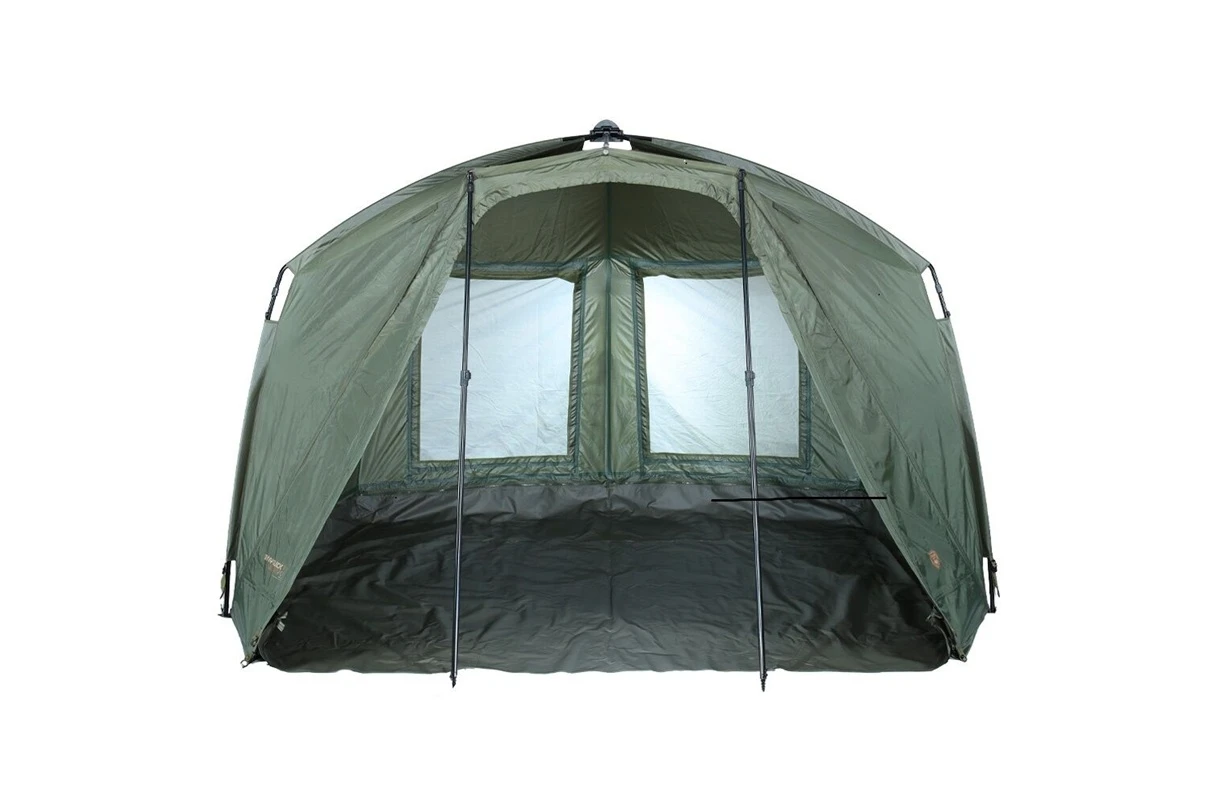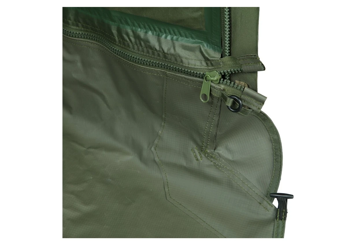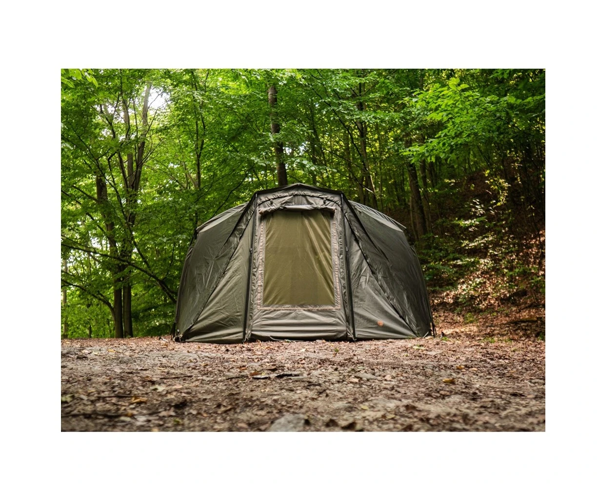 Veľmi chválime hrubú odolnú podlahu bivaku, ktorá sa pripína na zips a tak zamedzuje vniknutiu hmyzu či hlodavcov dovnútra bivaku. Cirkuláciu vzduchu zabezpečujú dve veľké zadné okná s moskytiérou a tiež predné okno na dverách. Aj počas teplých letných dní sa tak vo vašom rybárskom bivaku bude dobre vetrať a zostane tam príjemne. Celkovo konštrukcia bivaku je veľmi pevná a zaručuje ochranu aj pri búrkach či inom extrémnom počasí.