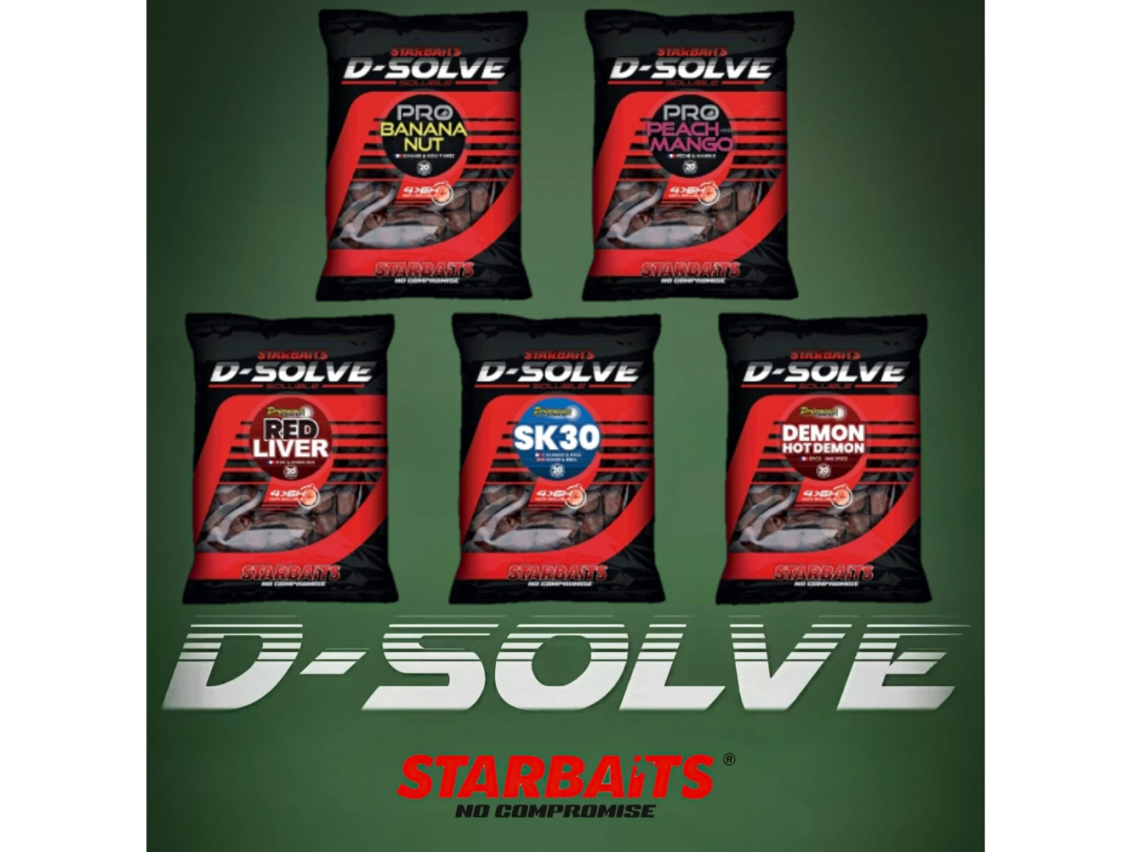Zaujímavá séria boilies značky Starbaits, ktorá je určená najmä na kaprárske preteky alebo na rýchly a efektívny lov rýb. Boilies D-Solve je ultra rýchlo rozpustná nástraha, ktorá začína pracovať okamžite po vhodení do vody a rozpúšťa sa v priebehu 4-6 hodín podľa teploty vody a množstva bielej ryby. Vďaka rýchlej rozpustnosti je ideálny aj do chladnej vody, kde potrebujete okamžité uvoľňovanie atraktorov.