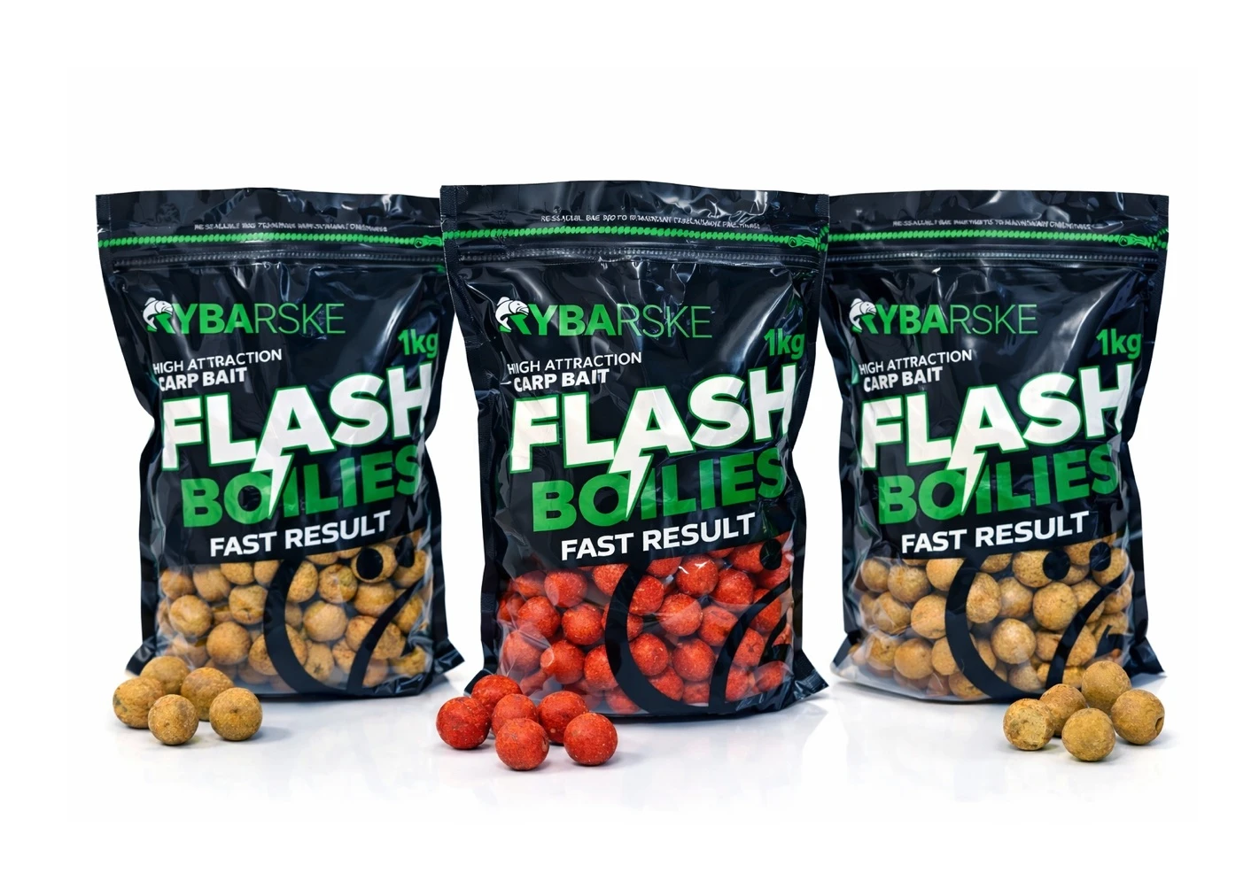 Boilies Flash sú vysoko atraktívne boilies na kapry, navrhnuté pre rýchly a cielený lov kaprov. Hrubá štruktúra zmesi zabezpečuje rýchle uvoľňovanie atraktívnych látok do vody, čo znamená rýchle prilákanie rýb na lovné miesto a dlhodobú účinnosť pri zakrmovaní kaprov. Tieto nástrahy na kapry sú ideálne nielen na krátke vychádzky, ale aj na systematickú kaprárinu zameranú na väčšie ryby.