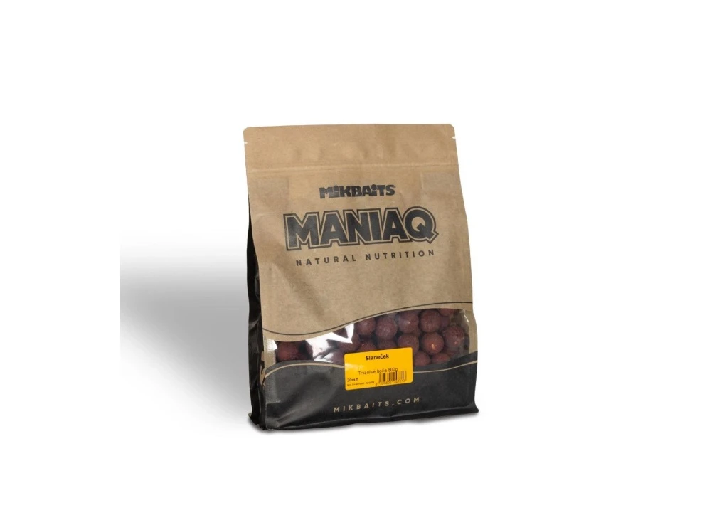 Boilies, ktoré funguje okamžite! Takto výstižne a jasne výrobca boilies značka Mikbaits opisuje radu boilies Maniaq. Toto boilies neobsahuje ani gram objemových surovín a je čisto založené na mimoriadne kvalitných prírodných surovinách, vtáčich zoboch, rybích múčkach a extraktoch, ktoré robia toto boilies výnimočným. Páve vďaka tomuto zloženiu boilies Maniaq pracuje okamžite po vhodení do vody, či už v lete alebo aj v studenej vode, pričom okamžite uvoľňuje potravinový signál a udržuje si svoju tvrdosť a odolnosť.
