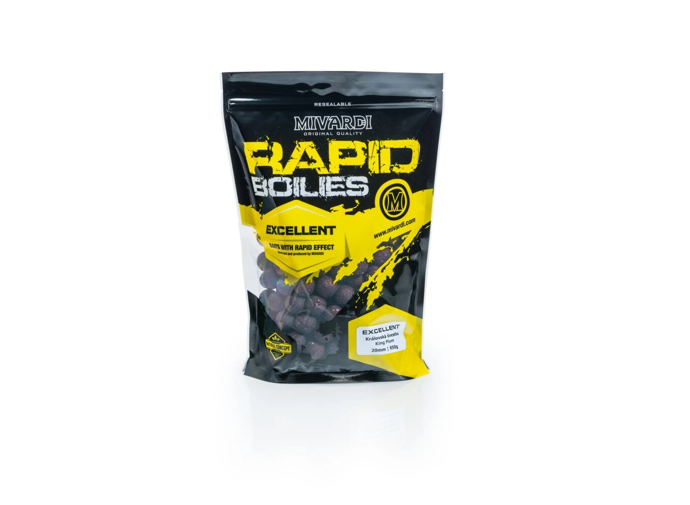 Boilies Rapid Excellent ProActive Kráľovská slivka obsahuje množstvo rozpustného rybieho proteinu a pečene, do ktorého boli pridané výrazné sladidlá a slivková aróma čím vzniklo boilies, ktoré je možné nasadiť do akcie počas celého roka.