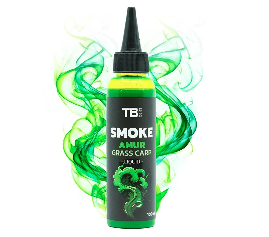 TB Baits Smoke Liquid Amur 100 ml je tekutá prísada určená na zatraktívnenie nástrah a kŕmenia pri love amura a kapra. Vyznačuje sa intenzívnou dymovou arómou a vysokou hustotou, vďaka čomu vytvára vo vode výrazný vizuálny efekt „dymovej clony“, ktorý láka ryby z veľkej vzdialenosti.