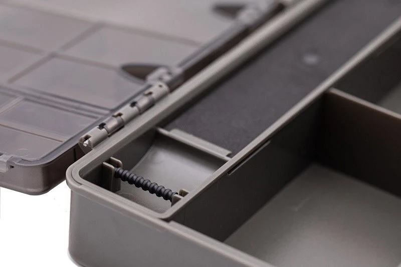 Anglický špecialista na lov kaprov značky Korda vždy prináša produkty, ktoré sú premyslené do posledného detailu tak aby bola zabezpečená ich efektivita pri love kaprov. Inak tomu nie je ani pri boxe Basix Tackle Box, ktorý zaručuje prehľadné a spoľahlivé rozmiestnenie vašej kaprárskej bižutérie na jednom mieste. Všetku dôležitú bižutériu tak budete mať pokope a pripravenú na lov. Box má dve poschodia a celkovo obsahuje až 21 priehradiek rôznych veľkostí, či už na uloženie drobností typu obratlíky, prevleky, klipy alebo kotulky s nadväzcovými šnúrkami alebo dokonca aj priestor na umiestnenie až 8ks hotových nadväzcov. Veko boxu je priehľadné aby ste vždy videli čo sa v boxe na chádza. Na jeho povrchu je tiež vygravírovaný meter a taktiež sú na ňom dve spoľahlivé klipy aby sa box samovoľne neotvoril. Rozmery sú 24x12x5cm.