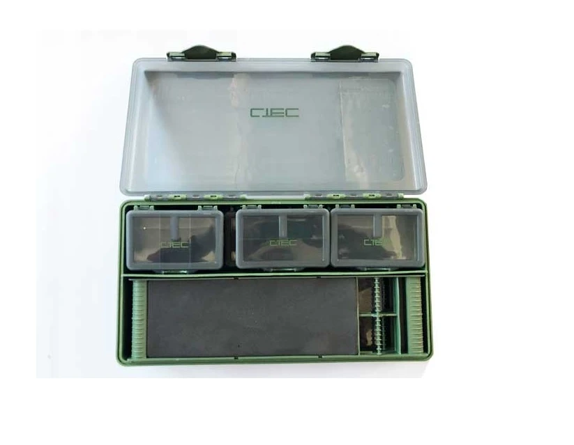 Veľmi praktický box nie len pre kaprárov, do ktorého sa zmestí naozaj veľké množstvo bižutérie a drobností potrebných na lov. Bo obsahuje celkovo až 6ks malých krabičiek určených na drobnú bižutériu ako sú obratlíky, krúžky, háčiky či iné príslušenstvo. V balení sú taktiež aj dve platá s EVA penou na uloženie hotových nadväzcov. A všetko je to uložené v hlavnom boxe s rozmermi 34x19x6 cm.