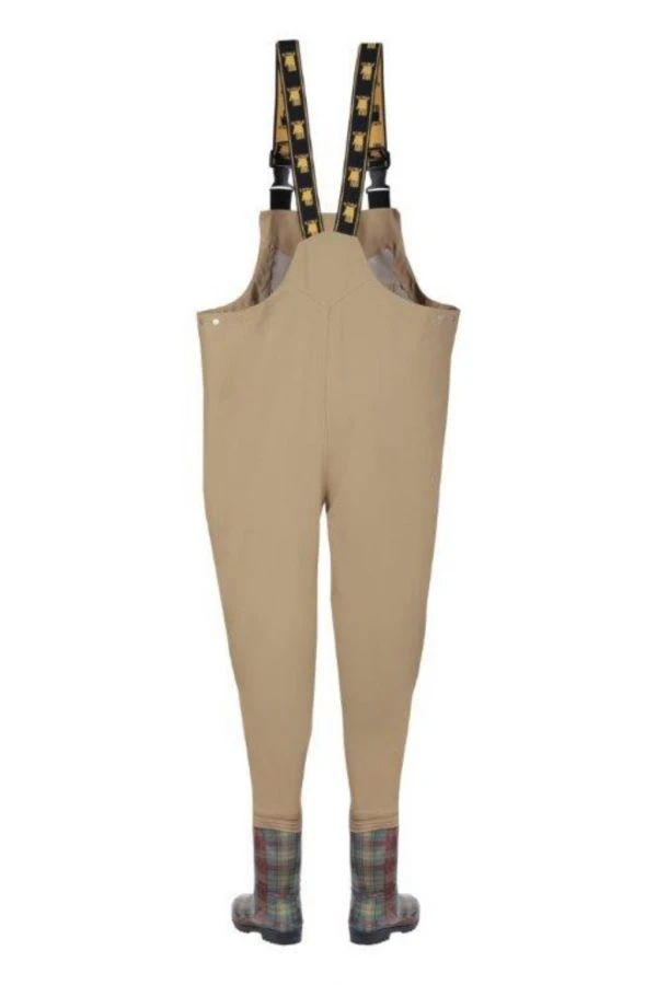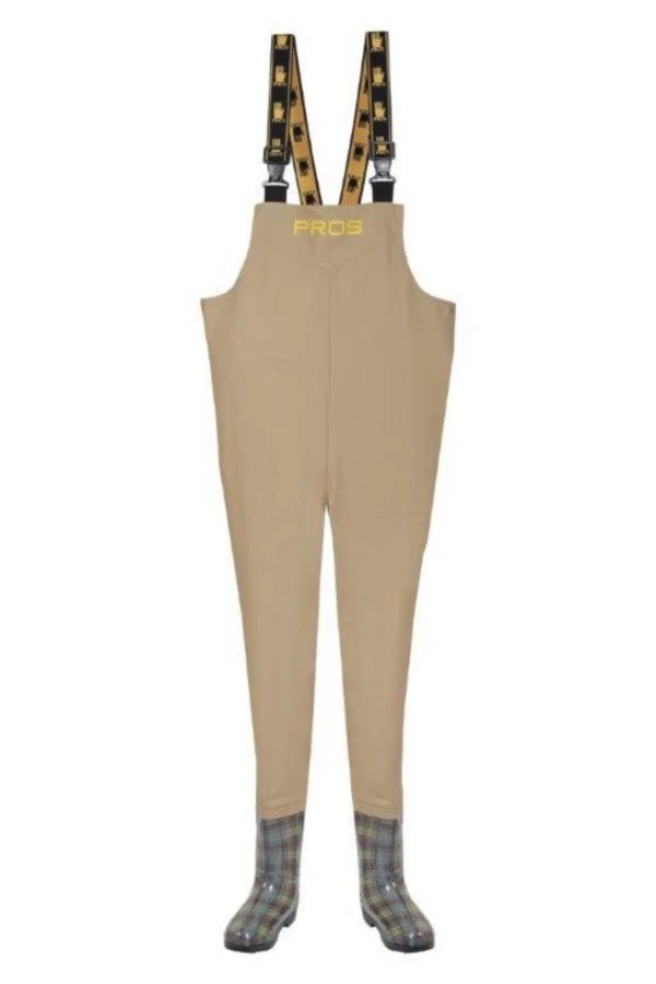 Exkluzívne dámske brodiace čižmy s označením SB01 značky PROS, ktorá patrí medzi najväčších výrobcov nepremokavej obuvi v Európe. Čižmy sú vyrobené v špeciálnom dámskom strihu z originálneho materiálu PLAVITEX s hrúbkou 0,6mm (zosilnený PVC/Polyester) 505g/m2. PLAVITEX je extrémne odolná technická tkanina odolná voči mechanickému poškodeniu, ktorá je doplnená dvojitými podlepenými švami zabezpečujúcimi dokonalú odolnosť proti pretečeniu. Exkluzívnosť týchto čižiem dotvárajú kvalitné boty 400P v príjemnom kockovanom dizajne s pevnou čiernou podrážkou. Samozrejmosťou sú elastické traky s rýchloprackami, sťahovacia šnúrka na hrudi, vnútorné vrecko a taktiež certifikát produktu spĺňajúci požiadavky Európskej normy EN343 o vodeodolnosti.