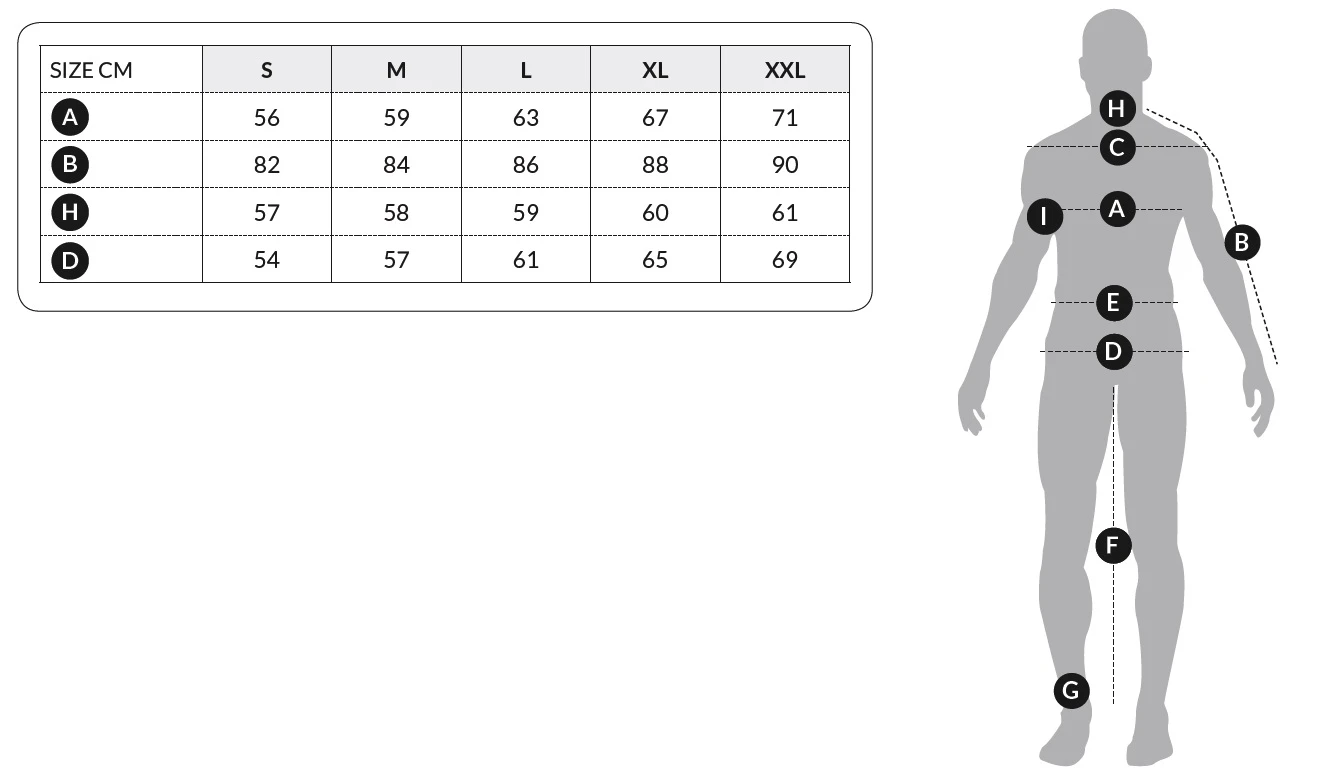 - Obvod hrudníka (cm) — líši sa podľa varianty