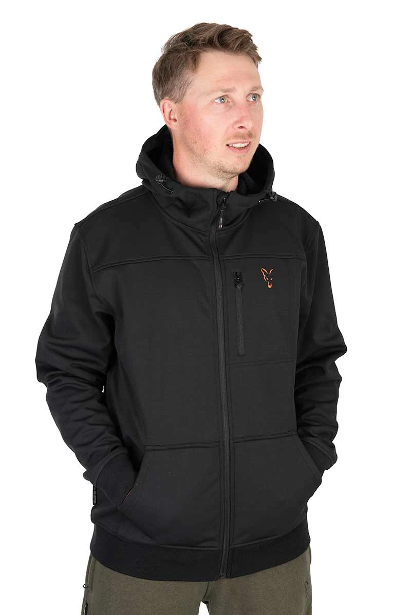 Veľmi príjemná softshell Bunda do chladného a prechodného obdobia v štýlovej čiernej farbe s oranžovým logom líšky Fox.