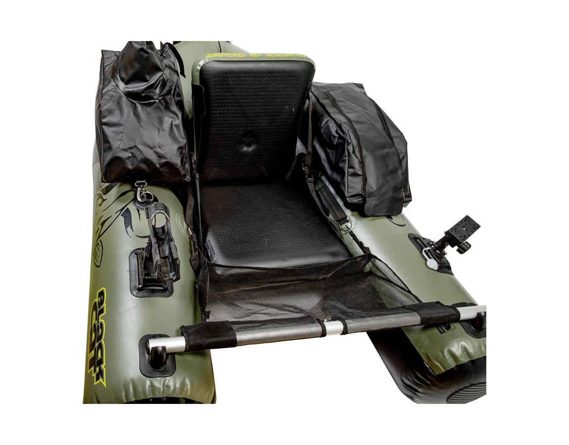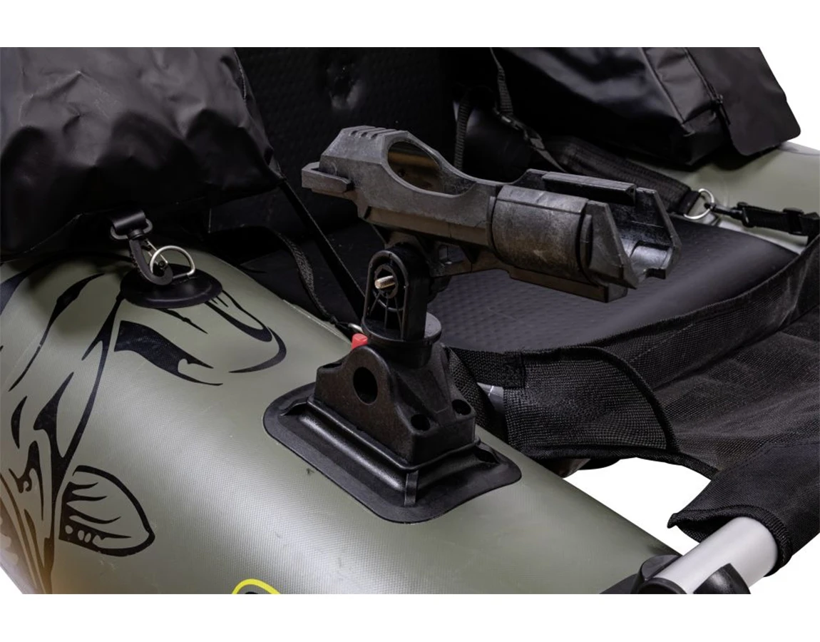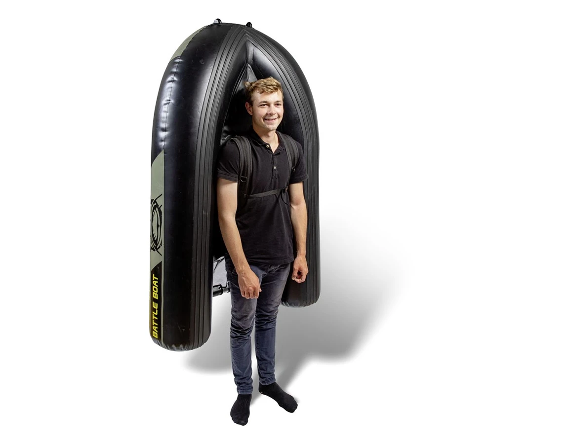 Dvojkomorová konštrukcia je vyrobená z hrubého PVC materiálu, na spodnej strane ponúka široké bezpečnostné lišty na ochranu pred ostrými kameňmi či prekážkami na dne. Pohodlne ho môžete v nafúknutom stave skladovať aj prenášať na chrbte (vďaka integrovaným popruhom). Okrem toho však Black Cat Battle Boat ponúka aj ďalšie praktické vychytávky - napríklad veľmi komfortný nafukovací sedák s operadlom, nastaviteľný držiak na prúty, či 2 plne vodeodolné priečinky, kde si môžete počas chytania odložiť svoje cennosti.