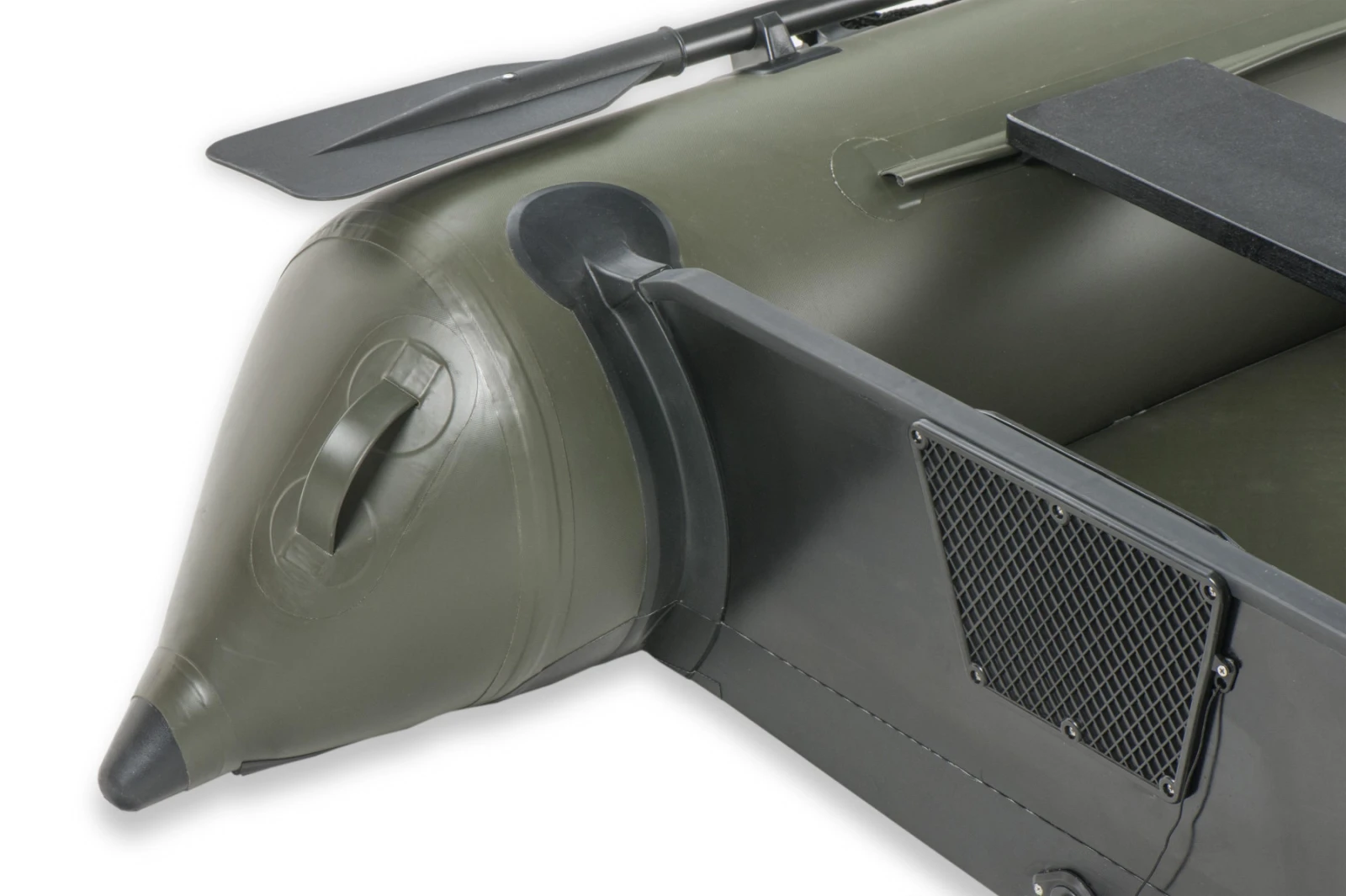 Nová generácia nafukovacích člnov M-BOAT s celou radou konštrukčných úprav a vylepšení. Zväčšená šírka až 162cm a upravený tvar zväčšili vnútorný priestor na maximum. Tomu napomáha aj nové riešenie zadnej časti plavákov, ktoré dovoľuje umiestniť zrkadlo čo najbližšie ku koncu plavákov a zároveň zachovať ich funkciu pri udržovaní smeru jazdy. Výrazne zdvihnutá predná časť spolu so špecifickým tvarovaním predne časti, výrazným nafukovacím kýlom po celej dĺžke podlahy a špeciálne tvarovaným zrkadlom zaišťujú nadpriemerné hydrodynamické vlastnosti člna a smerovú stabilitu. To v praxi znamená vyššiu rýchlosť, lľhšie ovládanie a nižšiu spotrebu energie pri pohone člna. Zosilený materiál plavákov zvyšuje odolnosť proti predraniu. Nafukovacia podlaha so zdvojenou nášlapnou vrstvou je takmer nezničiteľná a jej zelená farba skvele ladí so zfarbením plavákov člna. Čierne veslá a ostatné príslušenstvo skvele doplňujú celkový dizajn člna.