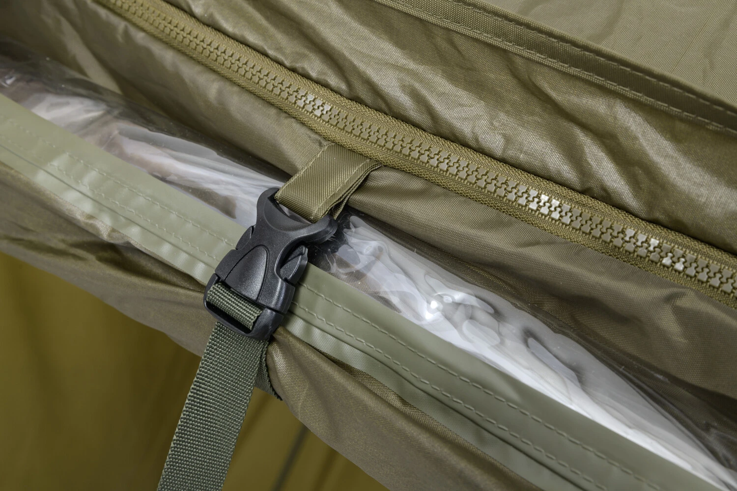 Špeciálne vyvinutý dáždnik presne prispôsobený pre umiestnenie dvoch lehátok vedľa seba. Unikátna štvorcová konštrukcia maximalizuje vnútorný priestor a umožňuje rybárovi využiť každý vnútorný kúsok priestoru. Konštrukcia hlavných rebier je vyrobená zo zosilnených laminátových tyčiek, ktoré zaručujú odolnosť a tuhosť najmä pri nepriaznivom počasí či silnejšom vetre. Absolútnu vodeodolnosť zaručuje nylonový materiál s vodeodolnosťou 8000mm, podlepené švy či prekryté zipsy po celom obvode.