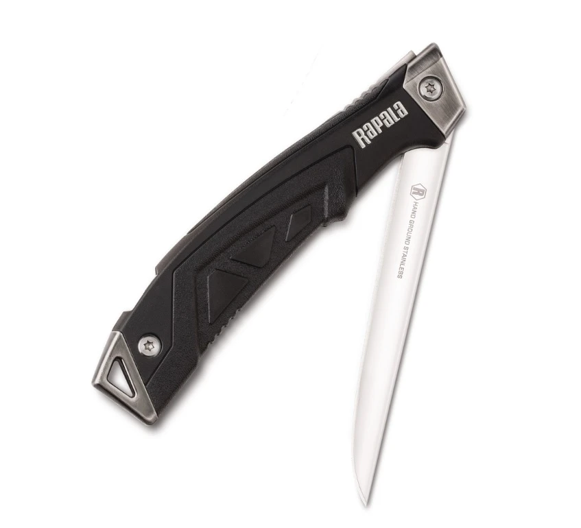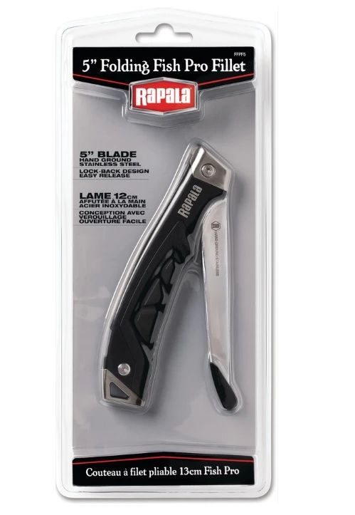 Nôž Folding Fillet Knife 5" je skladací, filetovací rybársky nôž s čepeľou z nerezovej ocele, má pohodlnú rukoväť, vďaka ktorej tvaru sa ruka neunaví ani po dlhej práci.