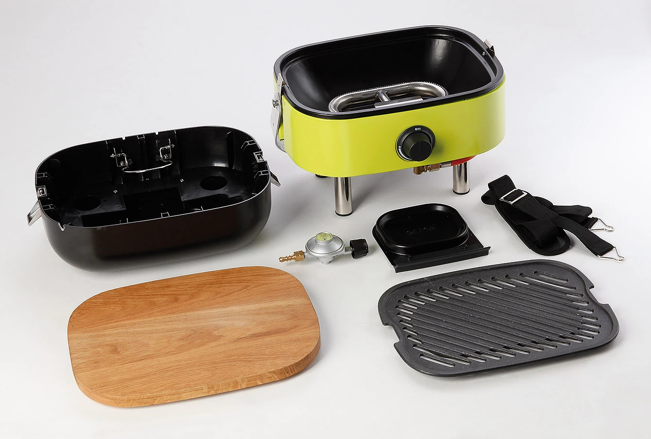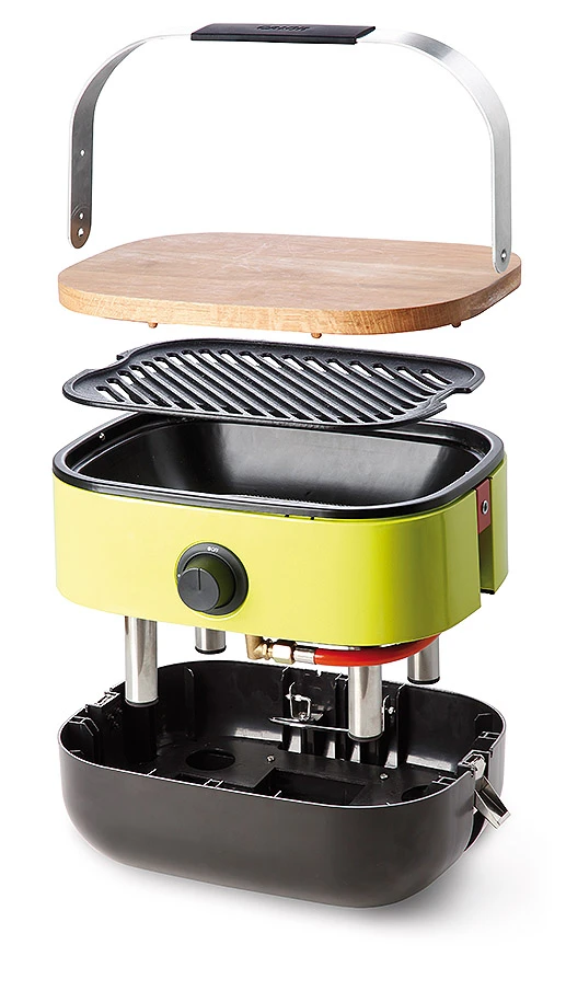 Mimoriadne praktický a skladný gril vhodný ako na balkóny, terasy tak aj do auta. Stačí len zastaviť, rozložiť sa a vpriebehu pár chvíľ už grilujete výborné jedlo. Obrovskou výhodou tohto grilu je absolútne precízne spracovanie a prvotriedne kvalita, ktorá prečká vaše očakávanie. Gril je napájaný pomocou plynových kartuší so závitom (nie sú súčasťou balenia) alebo 2kg plynových fliaš s jedným horákom. Horák rozpaľuje liatinovú vrchnú dosku s rozmerom 30x24cm, ktorá je určená na grilovanie. Súčasťou balenia je aj doska na krájanie či servírovanie, ktorá výborne zapadne do spodného krytu grilu čím sa vytvorí jednoduchý stolík. Gril má váhu 9,3kg a výkon horáka 2,5kW. Rozmery grilu sú 42,5x33,5x27cm.