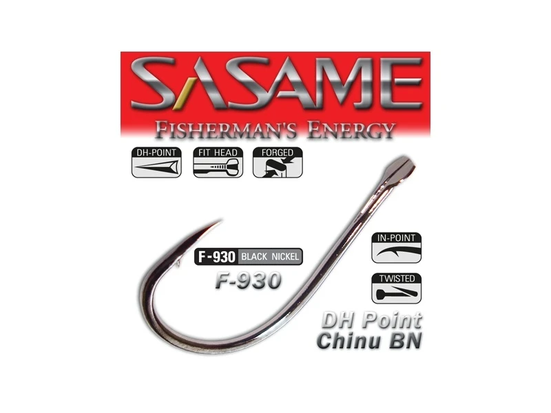 Japonská kvalita háčikov Sasame Chinu DH-Point. Háčiky s lopatkou sú brúsené laserom a chemicky ošetrené. Špeciálny tvar, široký oblúčik, rovný hrot na konci zahnutý do vnútra (orlí dráp).