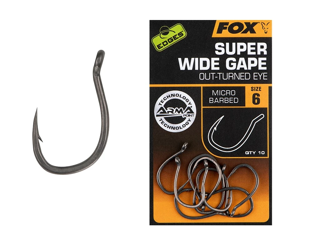 Použitie háčikov s tak širokým oblúčikom pri výrobe náväzca, pomáha zaseknúť viac kaprov, je veľmi obľúbený postup mnohých rybárov, a preto sme sa pustili do návrhu háčika s ešte širším oblúčikom ako pri veľmi populárnych háčikoch Gape a Stiff Rig. Predstavte si "Super Wide Gape", háčik so široko sa otvárajúcim oblúčikom, super ostrým zahnutým protihrotom a medzerou medzi ramienkom a hrotom širší ako u akéhokoľvek háčika ktorý ste kedy použili. Pri testovaní sa ukázalo, že aj tá najjednoduchšia montáž, sa stane neuveriteľne efektívnou. Akonáhle ryba nasaje a vypľuje náväzec opatrený háčikom s tak široko roztvoreným, zostáva toľko priestoru pre zaseknutie háčika a tak sa šanca na jeho zaseknutie sa veľmi zvýši, čo vám umožní sa menej starať o mechaniku montáže a viac sa starať o to správne miesto pre jeho umiestnenie. .