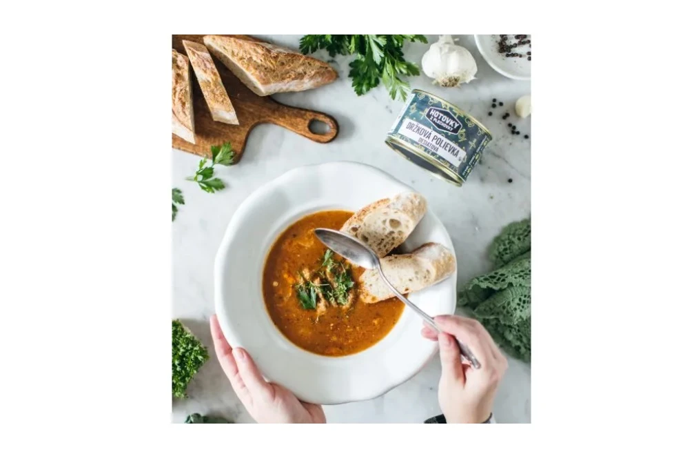 Vynikajúca držková polievka, na ktorej si skutočne pochutíte. Práve Hotovky z plechovky ponúkajú sterilizované hotové jedlo v konzervách, ktoré stačí len zohriať a pochutiť si ako v reštaurácii. Či už ste pri vode a užívate si rybačku alebo kempujete s rodinou a priateľmi, tak stačí len zohriať konzervu a dosýta sa najesť. Balenie 400ml je určené pre bohatý obed pre jednu osobu, 800ml postačuje pre dvoch ľudí na plnohodnotné jedlo. Všetky jedlá sú slovenskej výroby pričom spĺńajú všetky potravinárske štandardy a sú zarukou vysokej kvality.