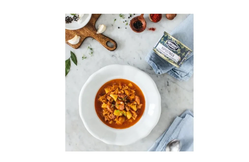 Vynikajúca hustá kapustnica s údeným mäsom, na ktorej si skutočne pochutíte. Práve Hotovky z plechovky ponúkajú sterilizované hotové jedlo v konzervách, ktoré stačí len zohriať a pochutiť si ako v reštaurácii. Či už ste pri vode a užívate si rybačku alebo kempujete s rodinou a priateľmi, tak stačí len zohriať konzervu a dosýta sa najesť. Balenie 400ml je určené pre bohatý obed pre jednu osobu, 800ml postačuje pre dvoch ľudí na plnohodnotné jedlo. Všetky jedlá sú slovenskej výroby pričom spĺńajú všetky potravinárske štandardy a sú zarukou vysokej kvality.