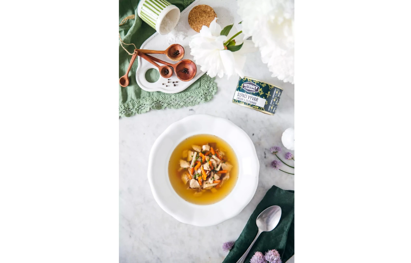 Tento sterilizovaný slepačí vývar obsahuje vyvážený pomer mäsa, zeleniny a korenín, ktoré spolu vytvárajú plnohodnotné jedlo vhodné na doplnenie energie počas dňa.