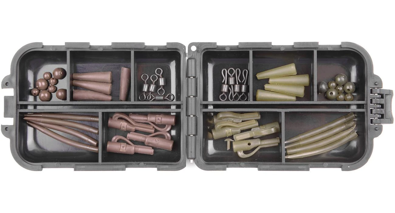 Mimoriadne praktické balenie kaprárskej bižutérie. V boxe s rozmermi 10x6,5x2,5cm nájdete celkovo až 8ks klipov na olová aj s prevlekmi, gumenné guličky, 4ks obratlíky, 4ks rýchlovýmenné obratlíky a 8ks prevlekov typu antitangle.