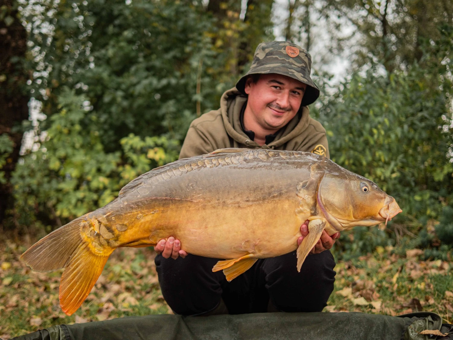 Veľmi praktický, obojstranný, rybársky klobúk v maskáčovom vzore s decentným koženým logom Giants Fishing.