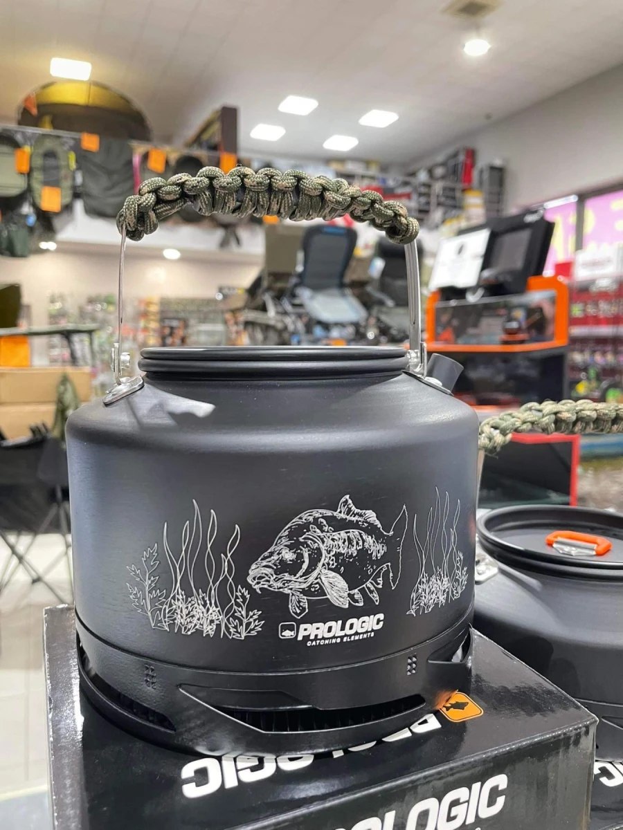 Krásny štýlový doplnok, ktorý by mal mať každý rybár. Či hľadáte krásny darček pre rybára alebo rozmýšľate čo ešte doplniť do vašej výbavy, tak konvička Blackfire Kettle Cup je ten správny tip. Vysoká kvalita nepriľnavého materiálu je doplnená nádherným ornamentom kapra s vodným rastlinstvom a logom značky Prologic. Konvička je vyrobená z robustného hliníkového materiálu s termo urýchlovacím spodkom. Práve spodná časť výrazným spôsobom urýchľuje prenos tepla čím sa voda ľahšie a rýchlejšie zohrieva. Takto ušetríte nie len čas aj množstvo spotrebovanej energie. Veľmi praktický je aj protišmykový úchyt či veko s plastovým úchytom.