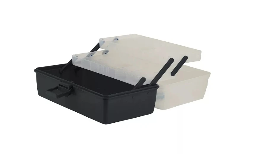 Praktický menší kufrík či už na uloženie základných rybárskych pomôcok alebo pre malého rybára. Kufrík má rozmery 30 x 18 x 15 cm pričom vnútri má dve poschodia s priehradkami. Práve do nich môžete uložiť všetky drobnosti. Do spodného priečinku môžete uložiť väčšie príslušenstvo či kŕmitká a ďalšie rybárske doplnky.