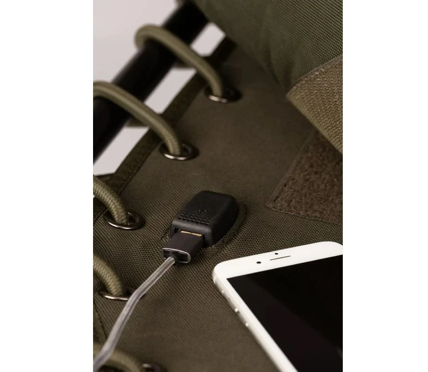 Novinkou je taktiež možnosť USB pripojenia, ktoré je v hornej časti lehátka pod odnímateľným matracom a je doplnené PVC vreckom zo spodnej strany lehátka, kam si môžete umiestniť zdroj nabíjania alebo svoj mobil a tak ho budete mať stále po ruke. Výhod je pri tomto systéme naozaj veľa a rozhodne je to aktuálne najkomfortnejší set aký si môžete zakúpiť.