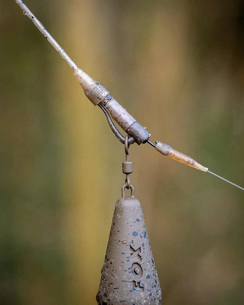 Firma Fox prichádza s úplne novým, patentovaným dizajnom Tubing Lead Clip, ktorý pevne uchopuje a drží hadičku vo vnútri klipu na olovo, čím zaisťuje, že sa neposúva po vlasci ako pri iných klipoch. Pri použití hadičky na pritlačenie kmeňového vlasca ku dnu alebo na ochranu bokov rýb je nevyhnutné, aby sa hadička počas zdolávania neposúvala po vlasci, inak by mohla nadvihnúť šupiny a spôsobiť rybe zranenie. Tubing Lead Clip zaručuje, že hadička sa nemôže posúvať po vlasci. Obsahuje bočné okienko, ktoré umožňuje navliecť na kmeňový vlasec poistný lievik (witches hat), ktorý sa zatlačí do hadičky. Po opätovnom nasadení okienka sa pegový mechanizmus zafixuje a uzamkne obratlík aj hadičku na mieste, čím zabráni ich uvoľneniu z klipu. Presne priliehajúca koncová gumička umožňuje, aby sa olovo v prípade zaseknutia bezpečne uvoľnilo, no na rozdiel od iných klipov sa hadička pri tom neposunie nahor.