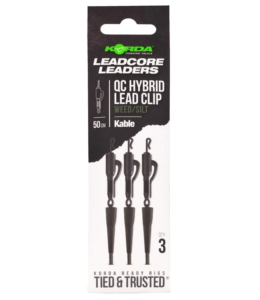 Korda Leadcore Leader Hybrid Lead Clip QC Swivel 50 cm - Weed je hotový nadväzec s olovenou šnúrou, určený pre efektívne prezentovanie montáže pri love kaprov.