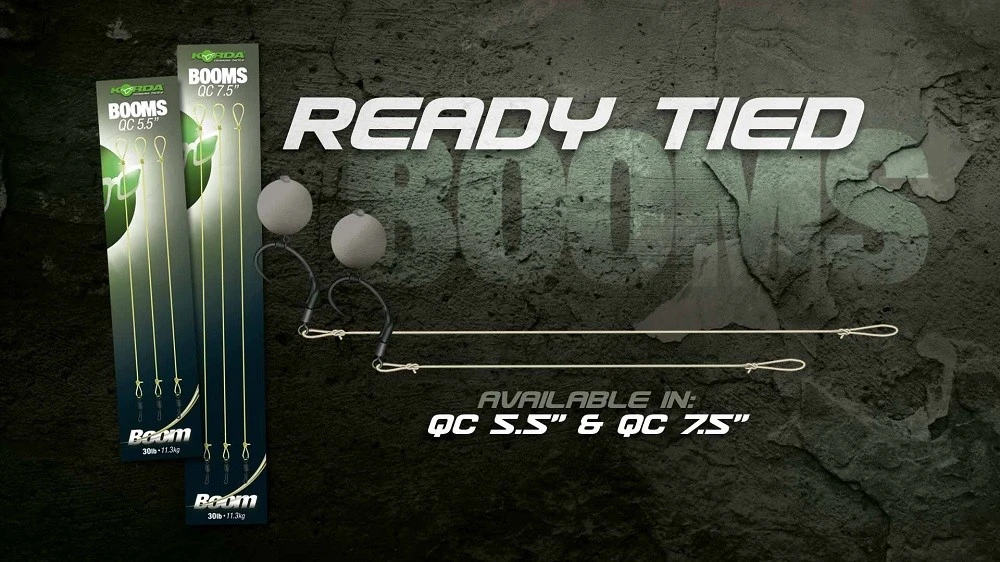 Predpripravené nadväzce, kde si už len doplníte háčik aký chcete použiť a môžete nahadzovať. Balenie Ready Tied Boom obsahuje 3ks nadväzcov s rýchlovýmenným obratlíkom, kde navlečiete háčik a pripevníte ku svojej montáži. Samotný použitý materiál Boom predstavuje extra tuhý materiál, ktorý si zamilujete. Ak potrebujete dosahovať extra ďaleké náhody, ak máte radi kombinované nadväzce či chytáte na chod rig nadväzce, tak rozhodne Fluorocarbon Boom od značky Korda je ideálny materiál pre vás.