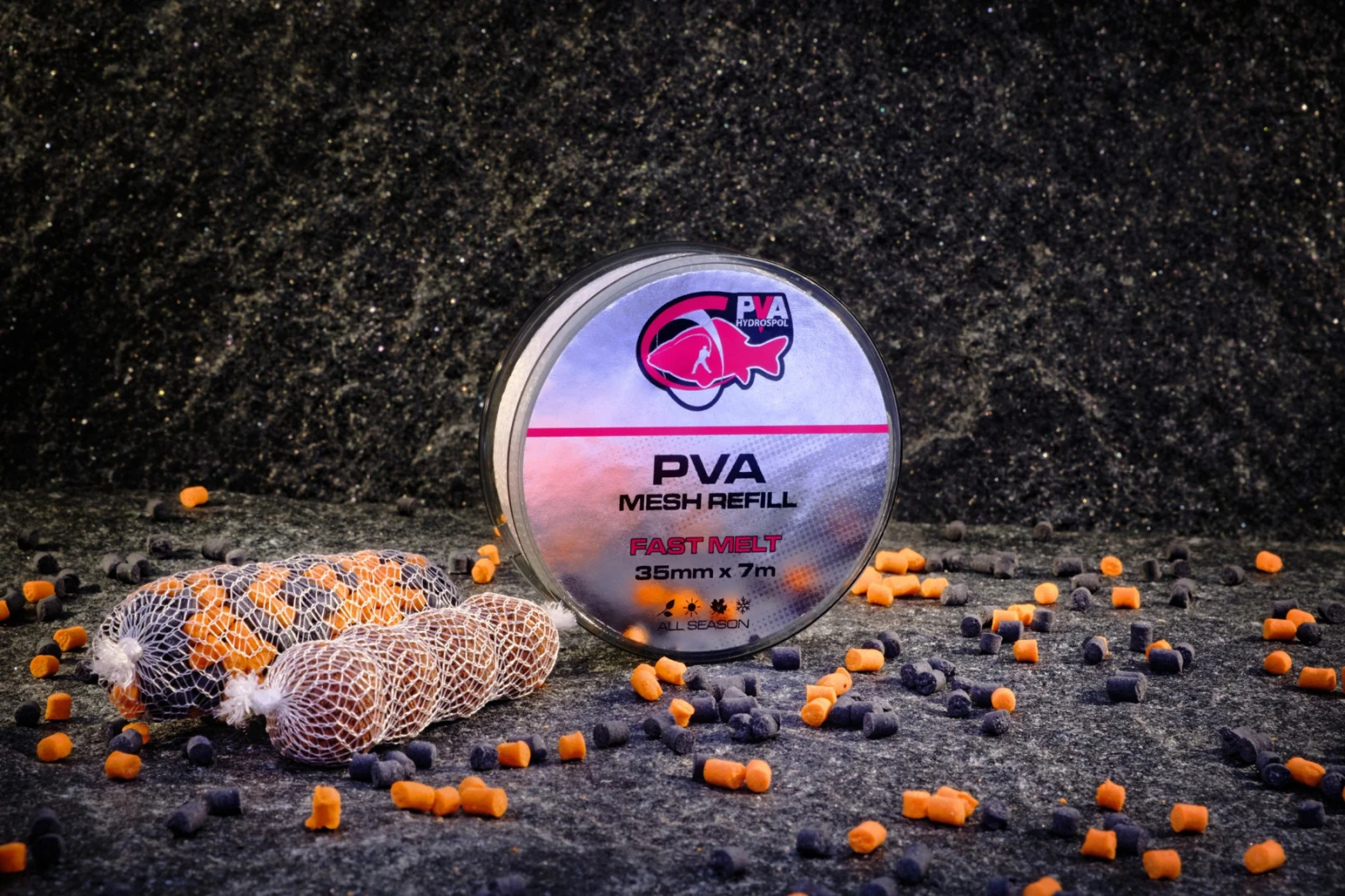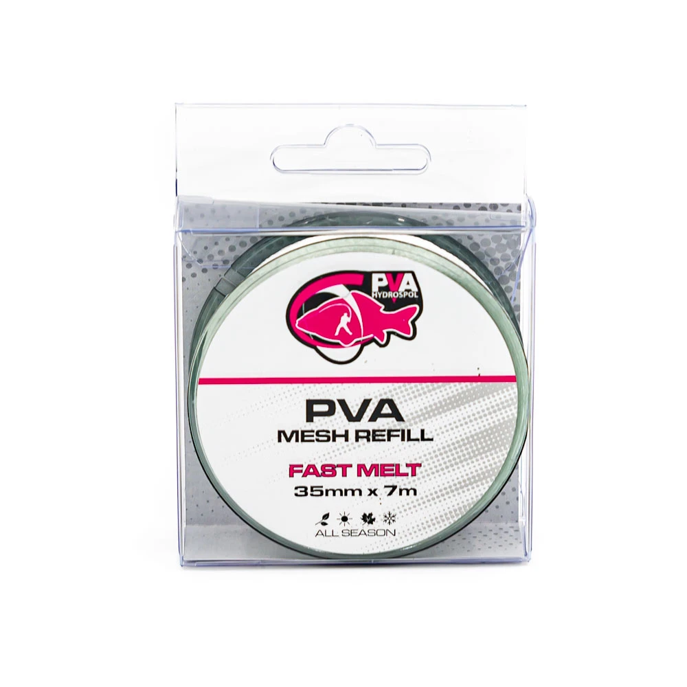 PVA náhrady sú vhodné na doplnenie pančuchy na prázdny tubus. Priemer 25 mm je pletený z 24 PVA vlákien a priemer 35mm je pletený z 36vlákien. Pančuchy Hydrospol môžete plniť sypkými materiálmi, drobnými peletami alebo nadrvenými boilies bez toho, aby Vám zvolená zmes prepadávala úpletom.