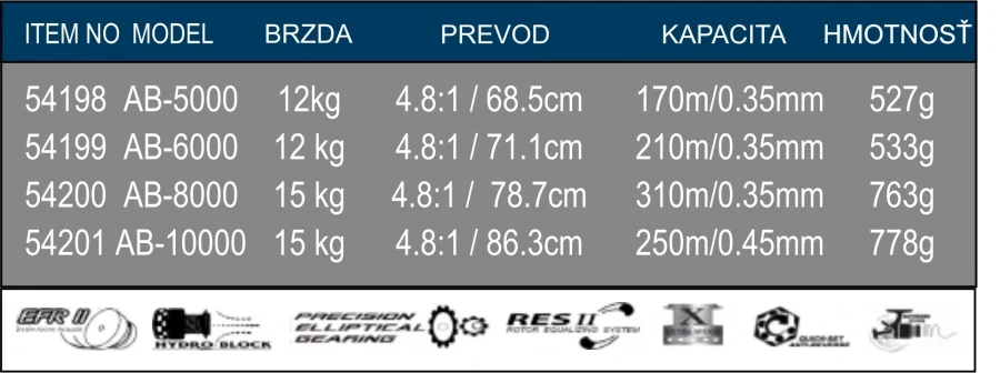 Aventa AB je skutočným klenotom, ktorý ocení každý kaprár. Jej moderný dizajn spĺňa aj najprísnejšie kritériá. Má štýlovú voľnobežnú brzdu, ktorá perfektne zapadá do precízneho prevedenia, automatickú páčku voľnobežnej brzdy/baitrunnera a 6 + 1RB ložisiek hnacieho systému pre hladký chod návinu. Dvojbrzdový systém je perfektne zladený, takže spodná brzda umožňuje presné nastavenie voľnobehu pri zábere a horná zas perfektne stlmí výpady bojovných kaprov pri zdolávaní. Grafitové telo je odolné voči korózii. Funkcia slow oscillation - veľmi pomalé vysúvanie cievky - zaručuje dokonale hladké ukladanie vlasca. To oceníte najmä pri love na veľké vzdialenosti, pretože vlasec sa bude z cievky odvíjať úplne hladko a vaše hody budú dlhšie.