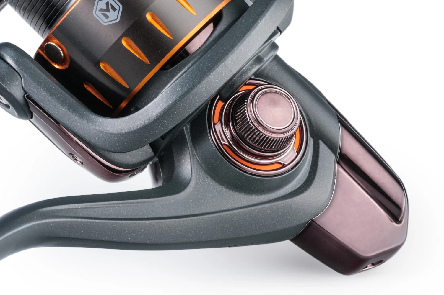 Predstavujeme kompaktný malý navijak, ktorý bol vyvinutý na lov feedrom prípadne method feedrom. Navijak má mimoriadne moderný dizajn, no hlavnou prednosťou je najmä špičková predná brzda so systémom Q.A.D., kedy takmer celý rozsah brzdy docielite pootočením brzdy o pol otočky. Prvotriedne ukladanie vlasca zaručuje osvedčený šnekový prevod a pomalou osciláciou cievky. Hladký chod a dlhú životnosť zaručuje až 8 ložísk a prevod 4,6:1. Môžete ho používať na aktívne chytanie rýb k feeder kŕmitkami ako na stojatých revírich tak aj na rieke.