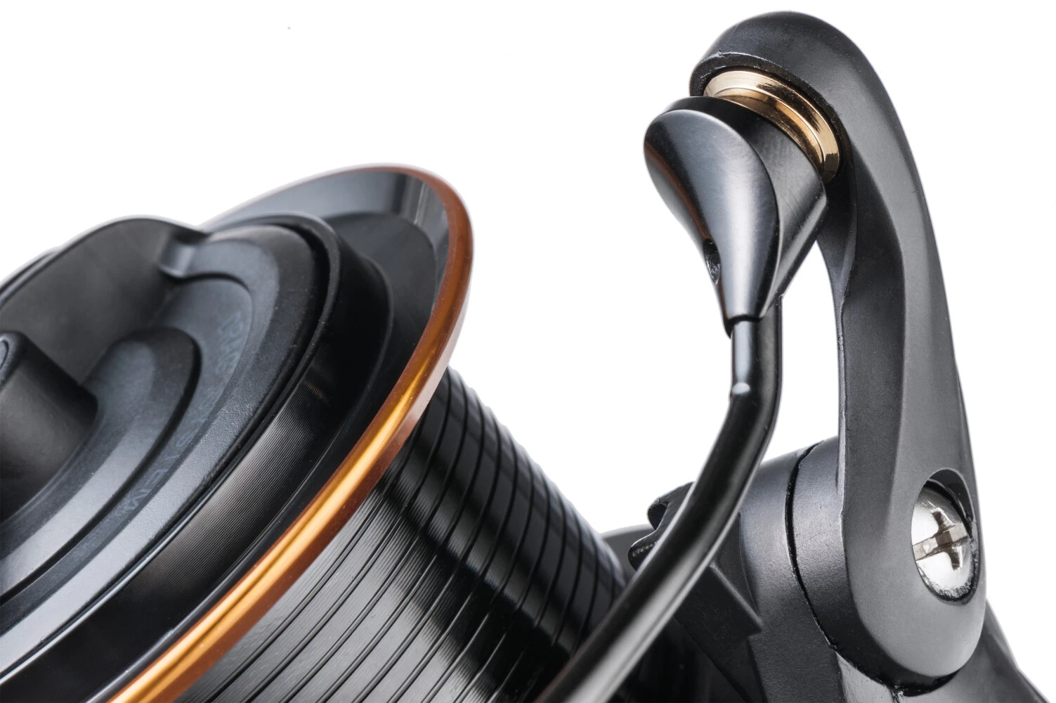 Excentrické madlo kľučky zaisťuje mimoriadne stabilný a pohodlný úchop. K navijaku je možné dokúpiť náhradné cievky v rôznych kapacitách od plytkej odhodovej až po extrémne hlbokú s kapacitou až 750m 0,30mm vlasca! Navijak sa dodáva s cievkou vo veľkosti 10000 s kapacitou 720m / 0,30mm vlasca.