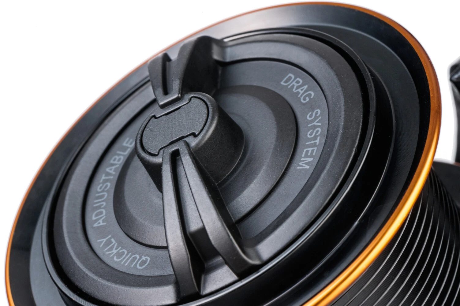 Cenový hit medzi kaprárskymi navijakmi s baitrunnerom! Robustný veľkokapacitný navijak vo verzii FS s voľnobežnou brzdou je vhodný pre lov na veľké vzdialenosti či už na ďaleké nahadzovanie alebo na vyvážku. Predstavuje ideálnu voľbu pre všetkých kaprárov, ktorí hľadajú veľký, nadštandardne vybavený, kvalitný a spoľahlivý navijak za super cenu. Tuhé a pevné telo z grafitovej zliatiny je osadené masívnym šnekovým prevodom a deviatimi zapúzdrenými nerezovými ložiskami. Brzdový systém umožňuje veľmi rýchle a presné nastavenie v rozsahu necelej polovice otáčky prednej matice. Extra široké cievky zaisťujú veľký návin na jednu otočku (viac ako 1m).