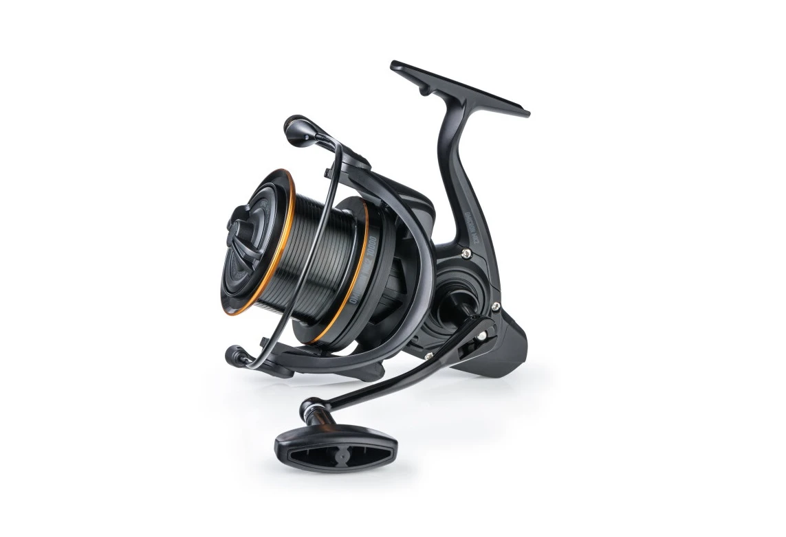 Cenový hit medzi kaprárskymi navijakmi! Robustný veľkokapacitný navijak vhodný pre lov na veľké vzdialenosti či už nahadzovaním alebo na vyvážku. Predstavuje ideálnu voľbu pre všetkých kaprárov, ktorí hľadajú veľký, nadštandardne vybavený, kvalitný a spoľahlivý navijak za super cenu. Tuhé a pevné telo z grafitovej zliatiny je osadené masívnym šnekovým prevodom a deviatimi zapúzdrenými nerezovými ložiskami. Brzdový systém umožňuje veľmi rýchle a presné nastavenie v rozsahu necelej polovice otáčky prednej matice. Extra široké cievky zaisťujú veľký návin na jednu otáčku (viac ako 1m). Excentrické madlo kľučky zaisťuje mimoriadne stabilný a pohodlný úchop. K navijaku je možné dokúpiť hlbšie náhradné cievky v rôznych kapacitách od plytkej odhodovej až po extrémne hlbokú s kapacitou až 750m 0,30mm vlasca! Navijak sa dodáva s cievkou vo veľkosti 10000 s kapacitou 720m / 0,30mm vlasca.