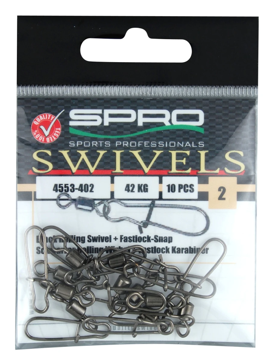Kvalitný Obralík s karabínkou Spro Rolling swivel + Fastlock Snap je obratlík s karabínkou, ktorá má spoľahlivý systém uzatvárania. Obratlík zabezpečuje aby sa nám nekrútil silón alebo šnúra.