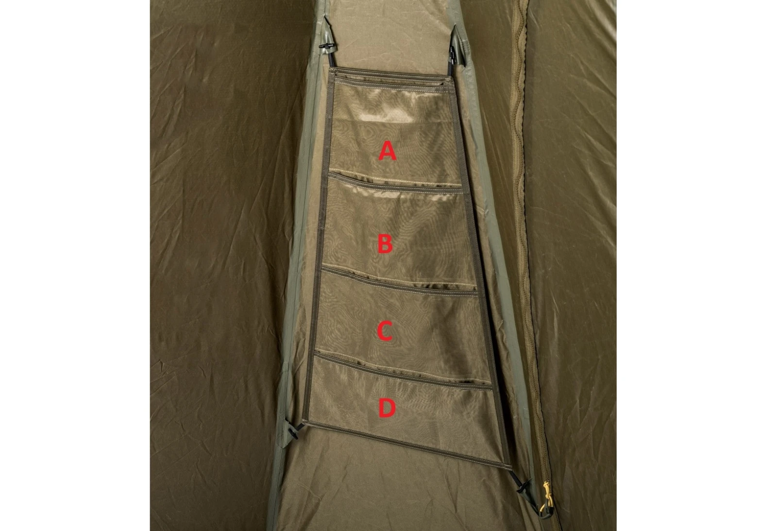 Originálny organizér určený pre Prístrešok Base Camp a vo veľkosti XL alebo XXL. V balení sú 4ks týchto organizérov. Tento organizér poskytuje množstvo odkladacieho priestoru pre všetky drobnosti, kľúče, zapaľovač, doklady, príposluch či ďalšie príslušenstvo. Organizér sa jednoducho upevní na existujúce úchyty v prístrešku pričom v prázdnom stave ho môžete zbaliť spolu s prístreškom. Skladá sa zo štyroch poschodí, každé poschodie má nosnosť okolo 1kg.