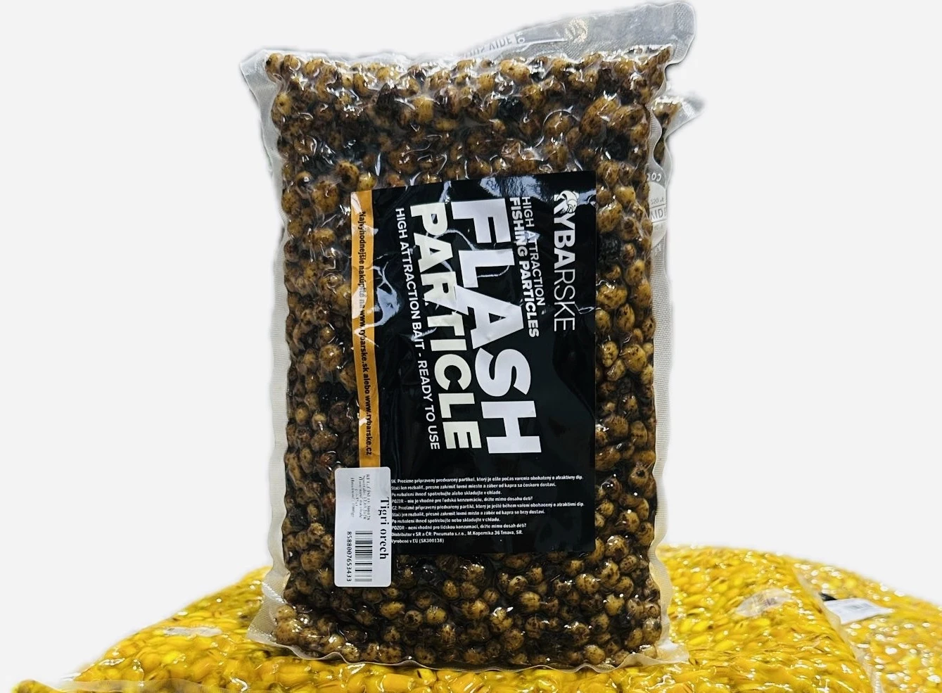 Partikel Flash Tigrí orech je pripravený bez ďalšieho varenia a výborne sa hodí aj na zavážanie pomocou zavážacích lodiek, kde dokáže vytvoriť mimoriadne atraktívne kŕmne miesto pre lov trofejných kaprov ale ho môžete nastražiť priamo na háčik.