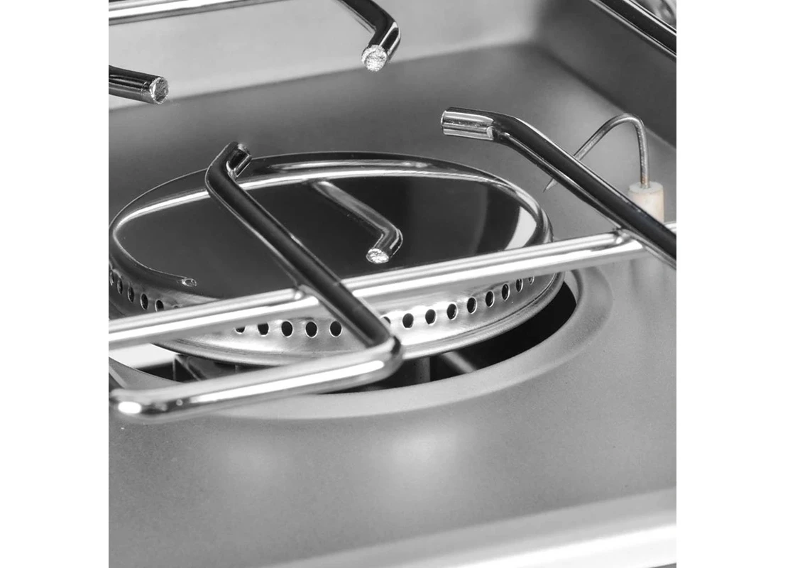 - vetruodolná konštrukcia chráni oheň pred vetrom až z troch strán a tak šetríte spotrebu plynu a dosahujete vyššiu efektivitu pri varení,