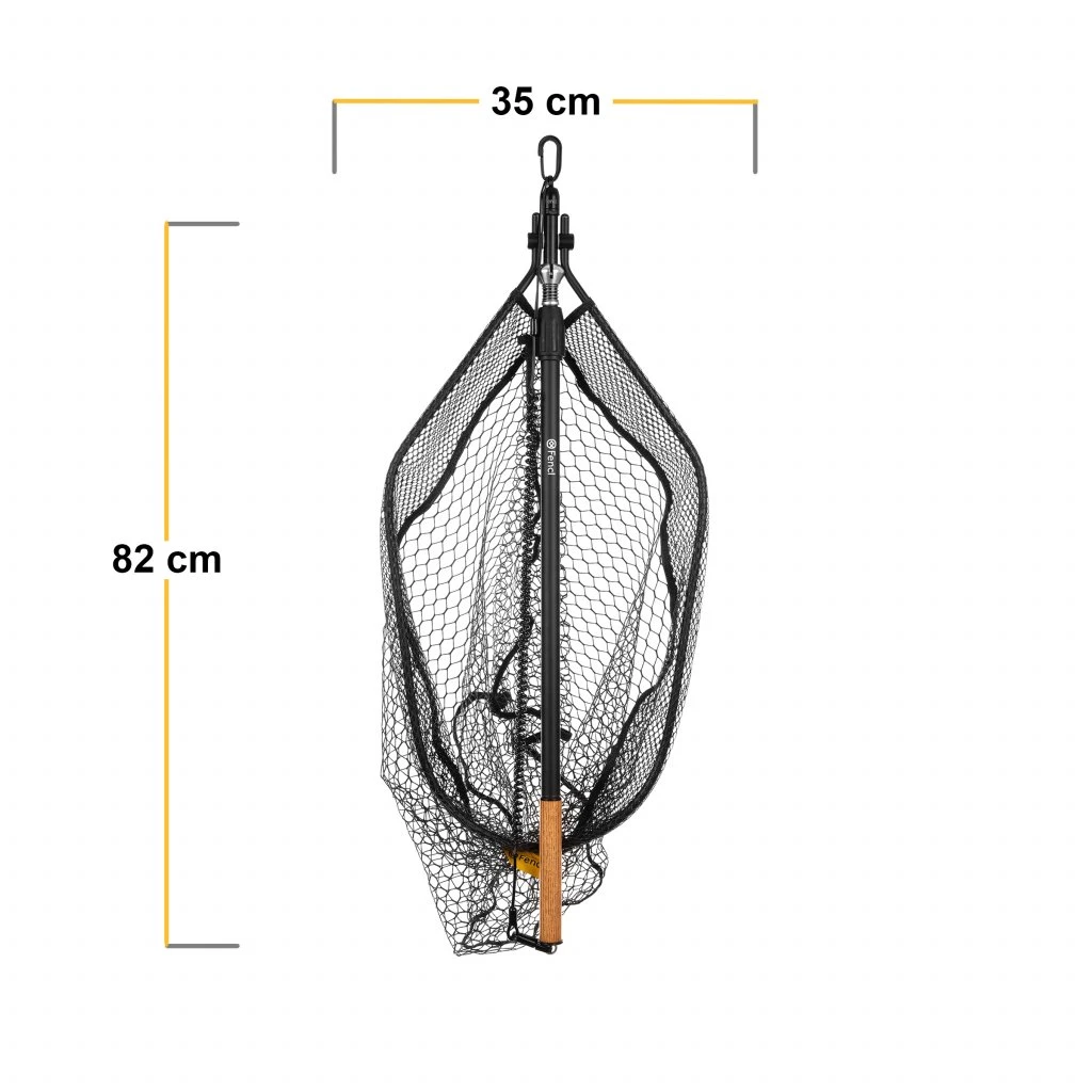 Podberák má vymeniteľnú pogumovanú sieť, kovový stred a rám o rozmere 35 x 82 cm.