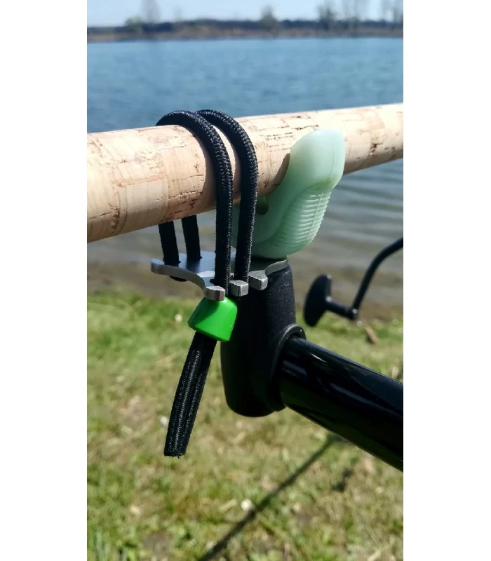 Poistka prúty rýchloupínacia slúži na poistenie zafixovanie prúta na rybárskom stojane či na vidličke pri razantnom zábere. Totiž sem tam sa stane, že záber je tak razantný, že brzda navijaka nestihne dostatočne zareagovať a prút vyletí zo stojana. Pomocou tejto poistky máte tento problém vyriešený. Stačí len dotiahnuť elastickú gumu na požadovanú dĺžku podľa hrúbky prúta a udica sa vám zafixuje na stojane. Kovovú časť poistky jednoducho vložíte pod rohatinku a dotiahnete.