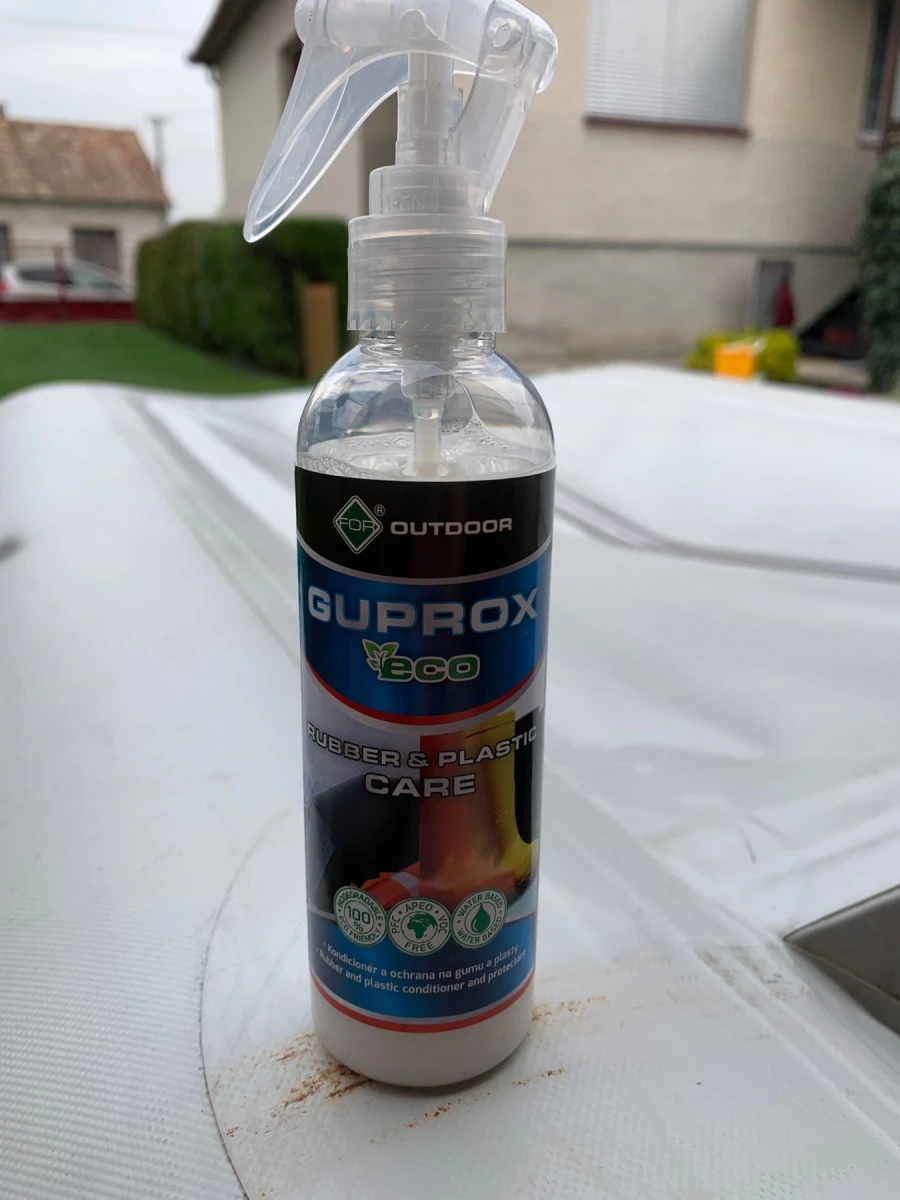 Impregnácia Guprox je výborný pomocník pre každého, kto sa chce postarať o svoj gumený čln a predĺžiť mu životnosť. Regeneruje materiál z ktorého je čln vyrobený a zabezpečuje mu ochranu pred prírodnými živlami. Pomocou impregnácie Guprox tak ochránite svoj čln pred mrazom, slnkom a vlhkosti. Prípravok treba naniesť v tenkej vrstve na suchý čistý povrch. Následne zabraňuje prenikaniu vzduchu do pórovej štruktúry gumy a jej oxidácii. Sami sme ho otestovali a 200ml balenie je ideálne veľké na člny do 320cm.