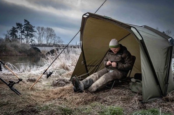 Dva kovové úchyty slúžiace na ukotvenie do zeme a špeciálne tvarovaný rám a celkový tvar bivaku dokonale ochránia rybára pred nepriaznivým počasím.