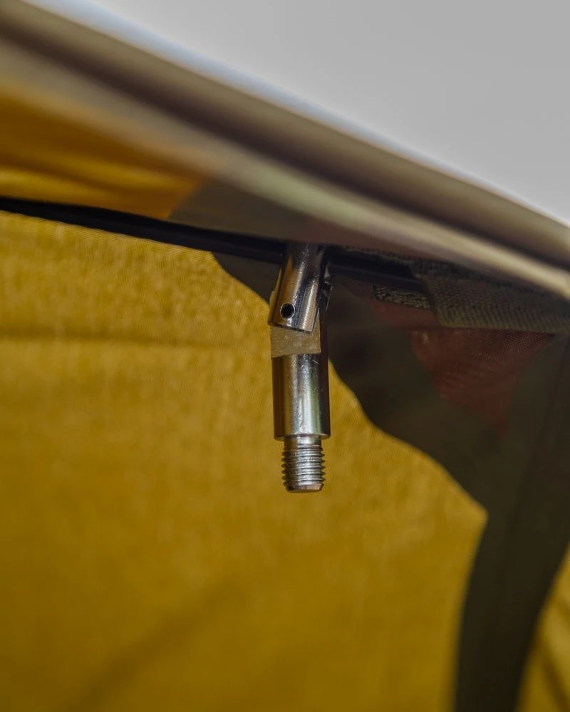 •Krátka stredová tyč so závitom zrýchľuje postavenie prístrešku (nie je nutné ju používať, ak chcete ešte znížiť prepravnú hmotnosť)