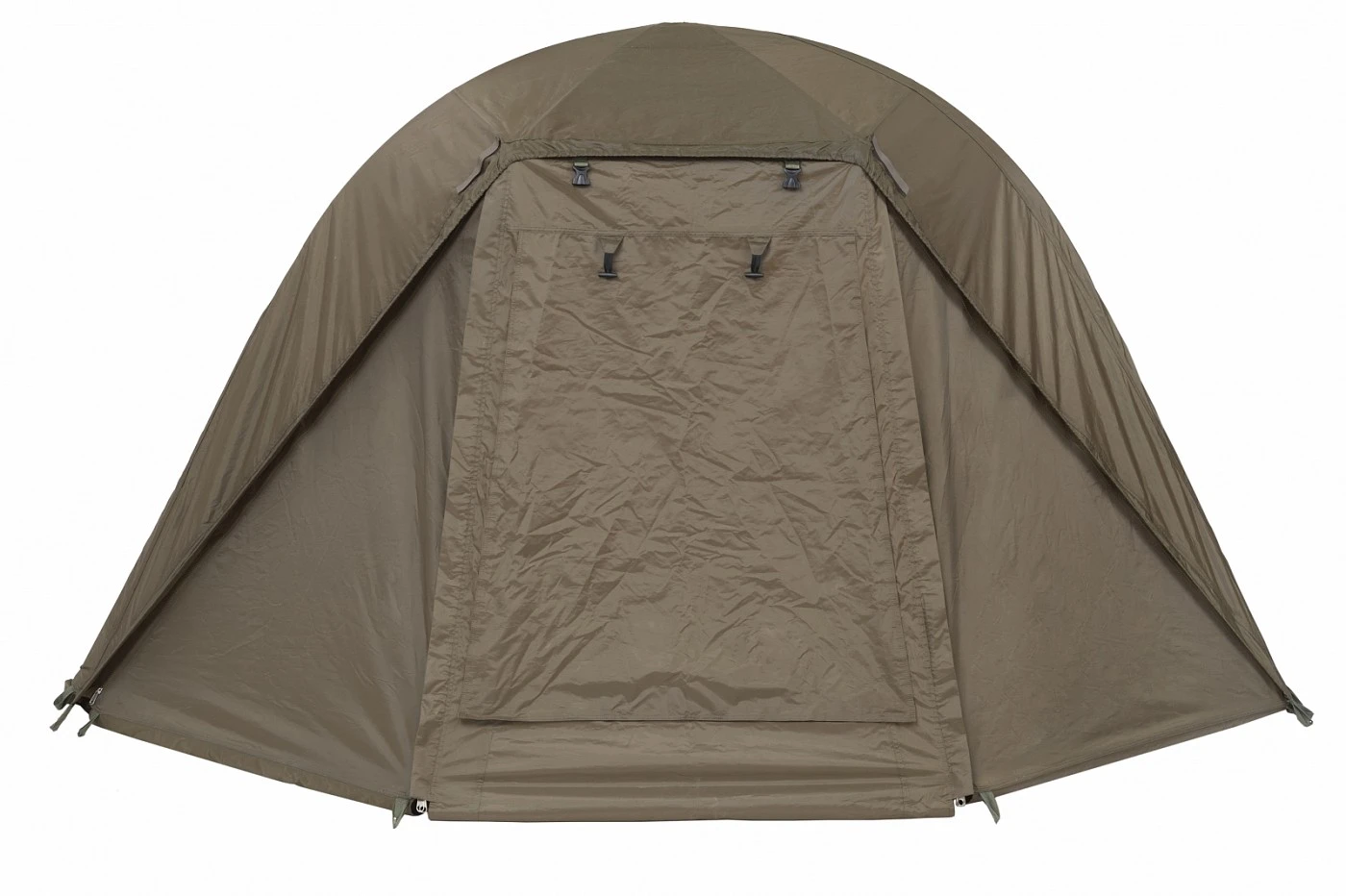 Mimoriadne praktický prístrešok s minimálnou prepravnou veľkosťou a hmotnosťou pre použitie s jednym lehátkom alebo dvoma kreslami. Jeho rozloženie a dôkladné napnutie plášťa je otázkou okamihu. Zavŕtavacie bivakové kolíky sa postarajú o spoľahlivé ukotvenie. Jednoduchá, ale dômyslne navrhnutá konštrukcia z masívnych trubiek zaisťuje maximálnu stabilitu aj v nepriaznivom počasí a pomáha udržať extrémne nízku hmotnosť. Tomu napomáha aj plášť z materiálu 210D s vodným stĺpcom 5000 mm. Dôkladné podlepenie švou je samozrejmosťou. Prístrešok je dostupný v základnej (otvorenej) variante alebo v kompletnej sade s odopínateľným predným panelom.