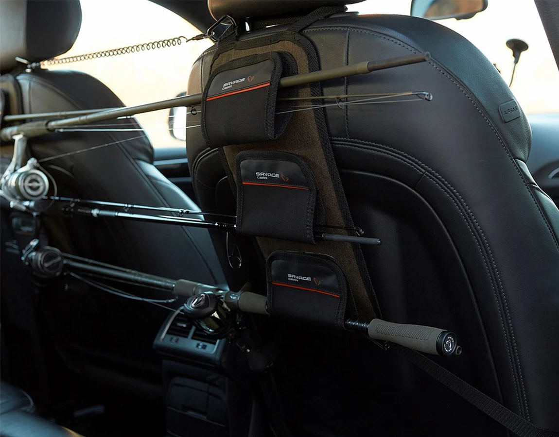 Pri prenášaní prívlačových prútov ich mnohí z nás pokladajú v aute na sedačky, v horšom prípade len položia do kufra bez akejkoľvek ochrany. Rozumieme, nie každý má doma prenosné puzdro na prívlačové prúty. Savage Gear ale prináša riešenie aj pre tieto situácie. Volá sa Savage Gear Car Seat Rod Rack 3 Rods a ide o šikovné a praktické puzdro na 3 prívlačové prúty do auta. Upevňuje sa na predné sedadlá auta zo zadnej strany, kde vo vertikálnej podobe dokážete uchytiť pomocou suchého zipsu 3 prívlačové prúty aj s navijakom. Limitujúcou je následne len šírka vnútorného priestoru vášho auta. Veľkou výhodou je aj plastové lano s karabínami, ktoré môžete uchytiť medzi hlavové opierky sedadiel a umiestniť naň ďalšie udice opreté o zadné sedadlá.