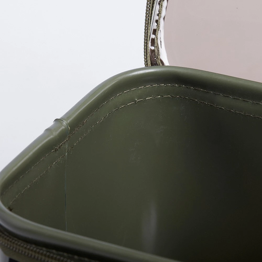 Všetky modely sú vyrobené z mimoriadne odolného 1,5mm a 1mm hrubého EVA materiálu, ktorý zaručuje dokonalú odolnosť voči vode a poškodeniu vnútorného materiálu. Takto budete mať všetky svoje kaprárske vybavenie chránené voči vode, rose či vlhkosti. Tomu boli prispôsobené aj zipsy s vodeodolnou úpravou. Vrchná časť je vyrobená z priehľadného materiálu s dymovou úpravou, ktorá chráni vnútrajšok pred UV žiarením slnka.