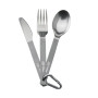 Riad Titánový Esbit TC3-Ti je extrémne ľahký a to len 40g všetko spolu. Skladá sa z lyžičky, nožíka a vidličky s dĺžkou približne 15,5cm, ktoré sú na časti, ktorá sa vkladá do úst, špeciálne leštené. Tento riad je absolútne zdraviu nezávadný a vďaka titán materiálu je takmer doživotný. Všetky časti príboru je možné spojiť na karabínu a vložiť do obalu. Obal tak viete ukryť do vašej výbavy alebo nosiť zavesený na opasku.