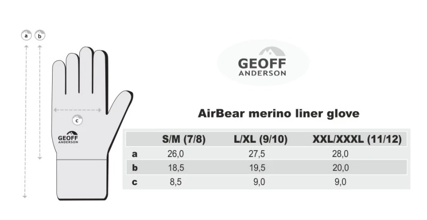 Prvotriedne rukavice dánskej značky Geoff Anderson, ktoré sú vyrobené z unikátnych vlákien Merino. Jedná sa o extra teplý a schnúci materiál zo špeciálneho druhu vlny oviec. Rukavice AirBear Merino sú ľahké, priedušné a výborne sa nosia. Prsty rukavíc majú jedinečnú úpravu, vďaka ktorej na dotyk reagujú aj mobilné telefóny a tablety. Dlaňová časť má protišmykové prvky, vďaka ktorým každý uchopený predmet pevne drží v ruke.
